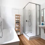This accommodation offers comfort amenities such as air an iron and ironing board, as well as entertainment options like a TV. Featuring a bathtub, a separate toilet, and a shower, a bathroom also comes with hair dryers and towels.